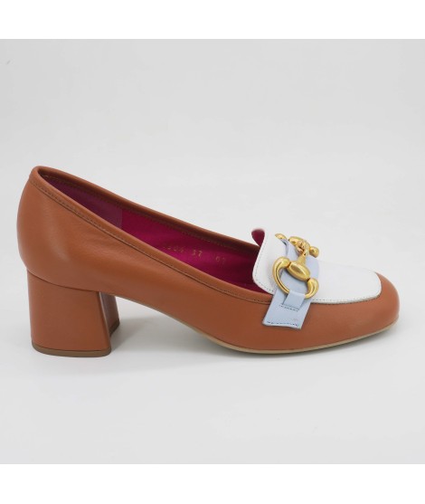 Le Babe Mocassino Tacco Accessorio Pelle Multi Cuoio Bianco