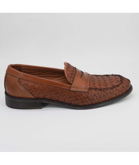 Rogal's Mocassino College Intrecciato Cucita Fondo Cuoio color Cuoio