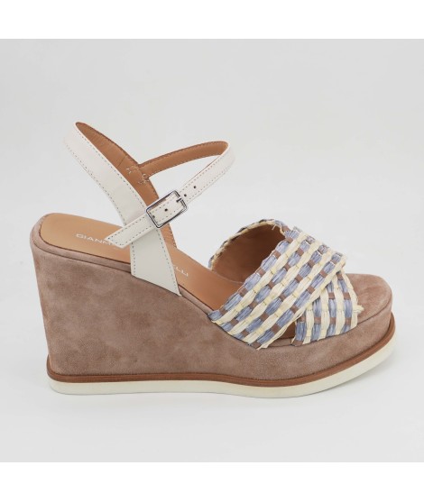 Gianmarco Sorelli Vela Sandalo Zeppa Alta Camoscio Rafia Multi Cuoio