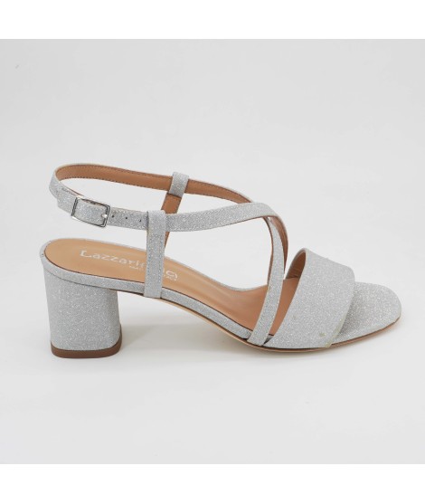 Lazzari Felici Sandalo Cerimonia Tacco Medio Incrocio Glitter Argento