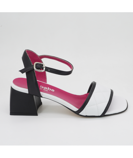 Le Babe Sandalo Tacco Medio Trapuntato Pelle Bianco Nero
