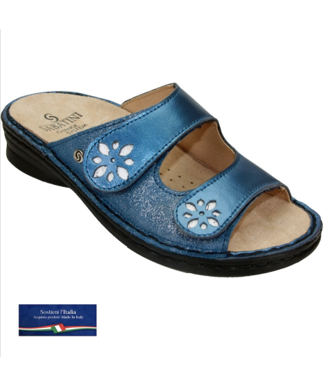 Sabatini Ciabatta Plantare Ideal Doppio Velcro Fiori Cobalto