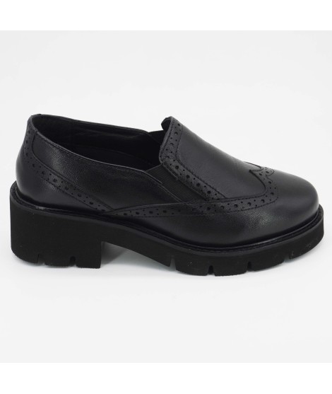 Rogal's Mocassino Liscio Vaschetta Fondo Cuoio Antiscivolo Nero