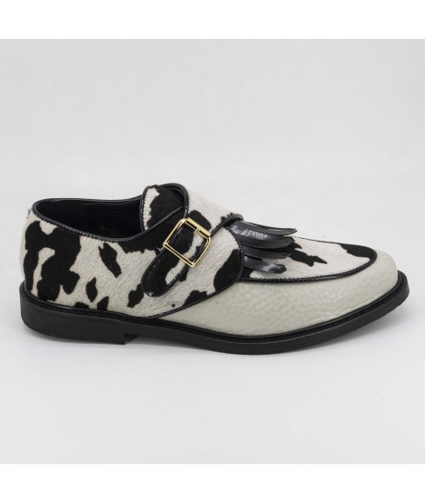 Hegos Monk Fibbia e Frangia Animalier Mucca Bianco Nero