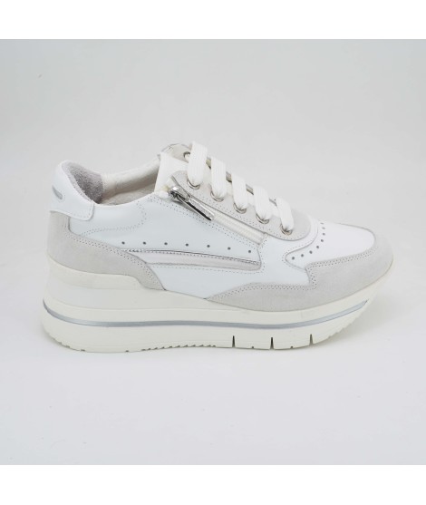 Grunland Sneakers City Zeppa Alta con Zip Pelle Bianco