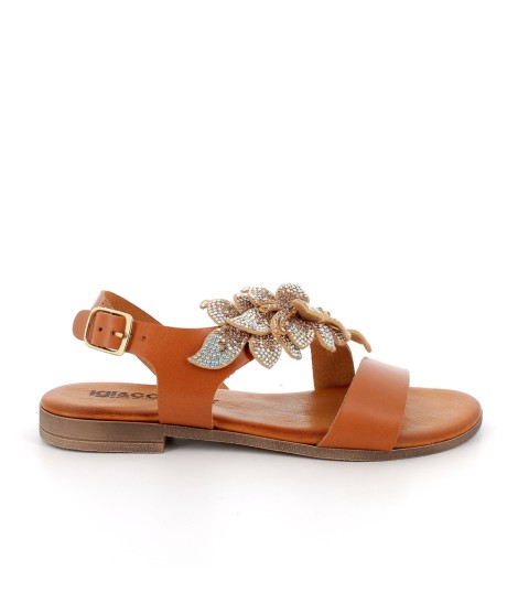 IGI &Co Sandalo Basso Trasversale Fiore Strass Cuoio