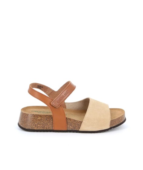 Grunland Sandalo Zeppa Fascia Camoscio Braccialetto Velcro Beige