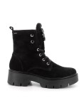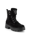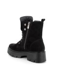 Questi stivaletti modello anfibi hanno una applicazione gioiello sulla linguetta che li rende particolarmente cool. La scelta di una pelle scamosciata li rende più morbidi dei classici anfibi, e grazie alla zip inerna si possono indossare con estrema praticità. Il sottopiede estraibile è in pelle.