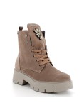 Questi stivaletti modello anfibi hanno una applicazione gioiello sulla linguetta che li rende particolarmente cool. La scelta di una pelle scamosciata li rende più morbidi dei classici anfibi, e grazie alla zip inerna si possono indossare con estrema praticità. Il sottopiede estraibile è in pelle.
