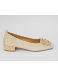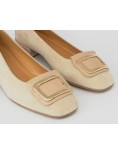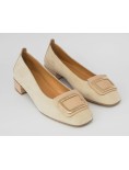 Fodera in pelle Beige e Tacco a Blocchetto Foderato in Vernice in Tinta