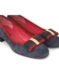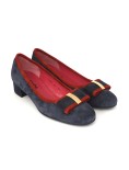 Le Babe Ballerina Tacco Medio con Fiocco Camoscio Blu Cardinale