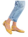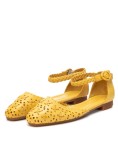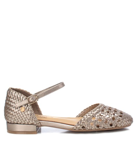 Ballerina da donna realizzate in pelle traforata e intrecciata di alta qualità con finitura metallica.