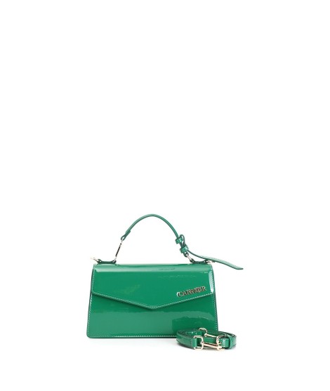 Minibag rigida effetto vernice con logo cafènoir con strass su manico regolabile. chiusura a calamita. borsa dotata di tracolla.