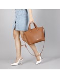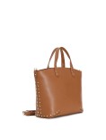 Tote rigida con manici. applicazioni di rivetti laterali e sugli angoli. chiusura con zip. borsa provvista di un comodo scomparto e di un taschino con chiusura a cerniera. borsa dotata di tracolla.