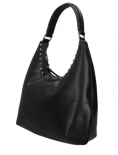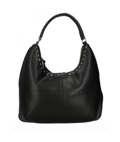 Borsa Cult dalle linee pulite e attitudine rock, un modello progettato per chi desidera un'eleganza quotidiana dal carattere deciso. Realizzata in ecopelle nera dalla grana naturale, si distingue grazie alle borchie sul profilo, elemento distintivo dell'intera linea.