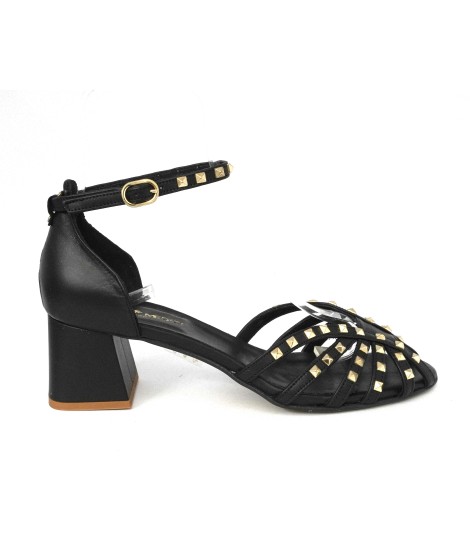 Carla De' Medici Sandali Gabbietta Borchie Tacco Medio Nero