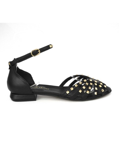 Carla De' Medici Sandali Gabbietta Borchie Tacco Basso Nero