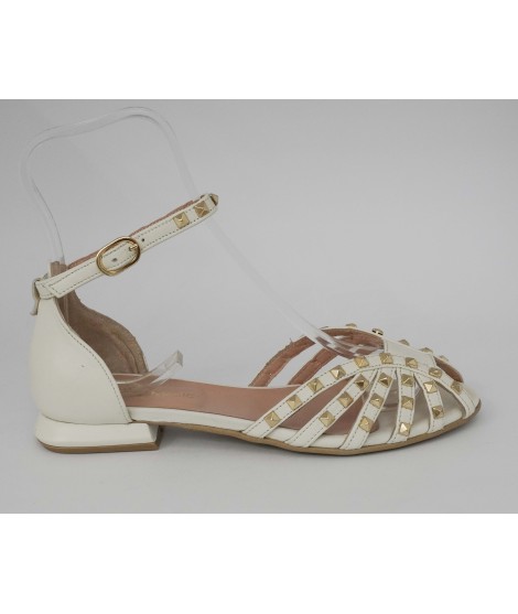 Carla De' Medici Sandali Gabbietta Borchie Tacco Basso Bianco