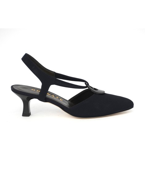 Brunate Slingback Tacco con Anello Tessuto Blu