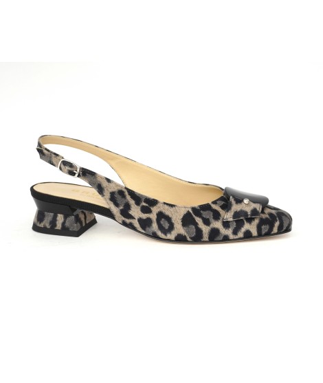 Brunate Slingback con Accessorio Spilla Tessuto Animalier