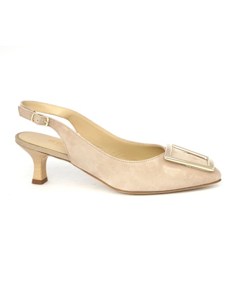 Brunate Slingback con Accessorio Metal Camoscio Cipria Beige