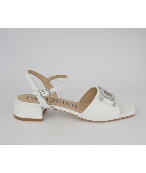 Pasquini Sandalo Tacco Largo Gioiello Strass Nappa Bianco
