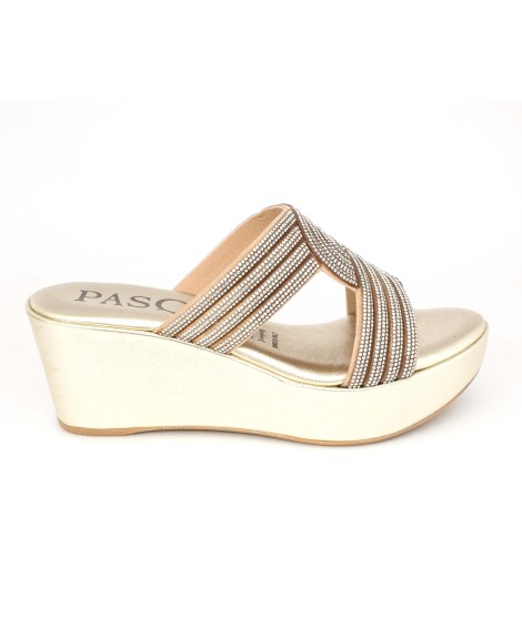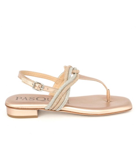 Pasquini Sandali Ciabatta Gioiello Strass Rame Pelle Platino