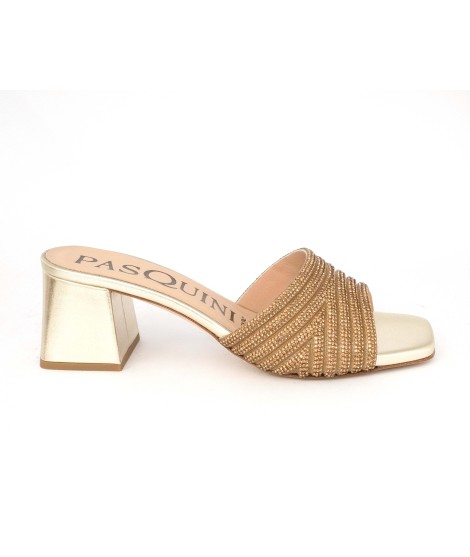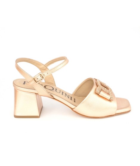 Pasquini Sandalo Tacco Medio Gioiello Strass Laminato Rame