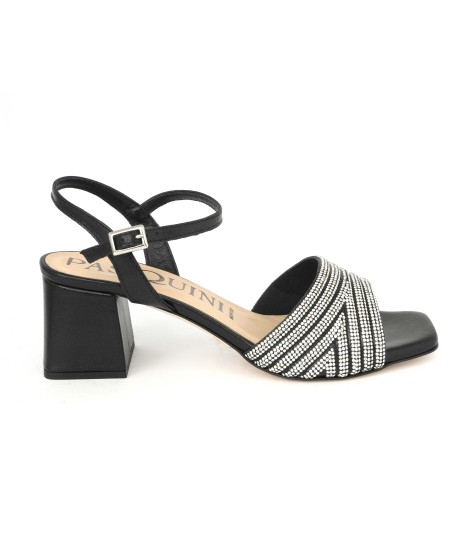 Pasquini Sandalo Tacco Medio Gioiello Strass Pelle Nero