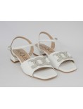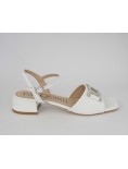 Pasquini Sandalo Tacco Largo Gioiello Strass Nappa Bianco