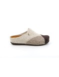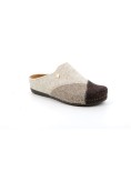 Ciabatta in feltro di vera lana con zeppa rivestita e tomaia melangiata.