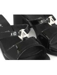 tomaia con due fasce che accolgono in Vernice Morbida e accessorio centrale con Strass .