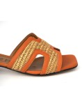 Tomaia in morbida Pelle monofascia con inserti in Rafia intrecciata