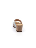 Tutta la leggerezza del sughero racchiusa in una zeppa pensata per slanciare. Il sottopiede Re-Soft ammortizza l’impatto al suolo e risulta morbidissimo anche dopo molte ore di calzata. La tomaia a doppia fascia avvolge il piede e le microrighe la rendono una ciabatta attuale, un passepartout per l'estate.