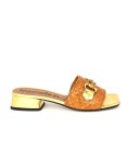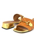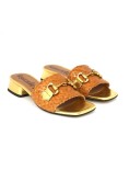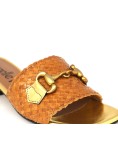 Tomaia in morbida Pelle intrecciata con morsetto e profili in laminato oro