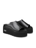Vero must di questa stagione, i sandali firmati Cult poggiano su un comodo platform e assicurati da una maxi fascia in pelle nera. Contemporanei e minimali, saranno un successo assicurato con shorts e bluse colorate.