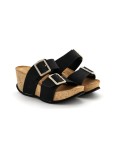 Ciabatta da donna realizzata in Micropelle* di ottima qualità con zeppa di 7 cm, sottopiede in pelle e fondo in gomma.