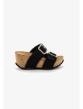 Goldstar Ciabatta Zeppa Media Doppia Fascia Fibbia Strass Nero