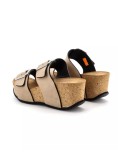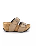 Ciabatta da donna realizzata in Micropelle* di ottima qualità con zeppa di 7 cm, sottopiede in pelle e fondo in gomma.