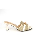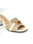 MOT-Clè Ciabattina Tacco Medio Morsetto Rafia Pelle Avorio