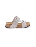 Tutta la leggerezza del sughero racchiusa in una leggera zeppa pensata per slanciare. Il sottopiede Re-Soft ammortizza l’impatto al suolo e risulta morbidissimo anche dopo molte ore di calzata. Il tocco di classe è dato dai fiocchi disegnati sulla tomaia e impreziositi da strass. Perfetta anche per le tue serate estive!