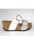 Ciabatta da donna realizzata in Micropelle* di ottima qualità con zeppa di 7 cm, sottopiede in pelle e fondo in gomma.