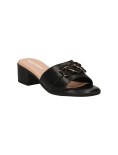 Ciabattina caratterizzato da accessorio con catena sulla fascia frontale e da comodo plantare imbottito foderato in pelle,
