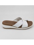 Ciabatta con Zeppa Multi e Plateau e tomaia con Fascia incrociata in Nappa morbidissima .