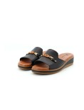 Realizzata in pregiata pelle, presenta una fascia con dettaglio decorativo. Il sottopiede imbottito Piuma Gel assicura comfort, mentre la zeppa da 3,5 cm garantisce stile e comodità.