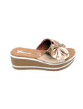 Ciabatta con Zeppa e Plateau tomaia monofascia con rouche in Nappa morbidissima .