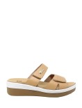 Comoda ciabatta realizzata interamente in pelle stampata effetto intreccio.