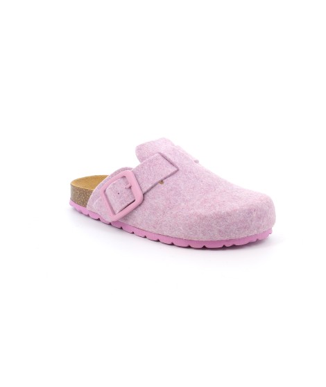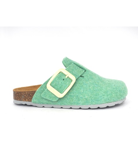Una rivisitazione della nostra celeberrima SARA a punta chiusa. I nostri designer hanno saputo abbinare alla coloratissima tomaia sia il battistrada che una fibbia maggiorata in tinta. Un ensemble di colori tono su tono che conquista! È realizzata in feltro riciclato da bottiglie di plastica. Il risultato è un feltro compatto e dall’aspetto tradizionale ma dal cuore green!