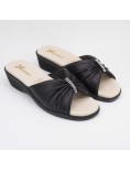 Ciabatta con Zeppa Comfort e tomaia Monofascia in Morbida nappa laminatae accessorio in Strass