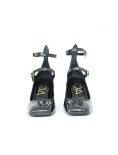 Forma e tacco quadra con Duplice braccialetto collo e caviglia in Vernice Lux e fodera in pelle Nero.